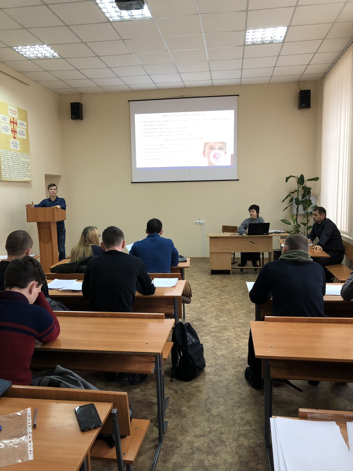Під час проведення захисту студенти демонстрували презентації та знання з теми наукового дослідження, відповідали на запитання, що задавались членами комісії та студентською аудиторією.