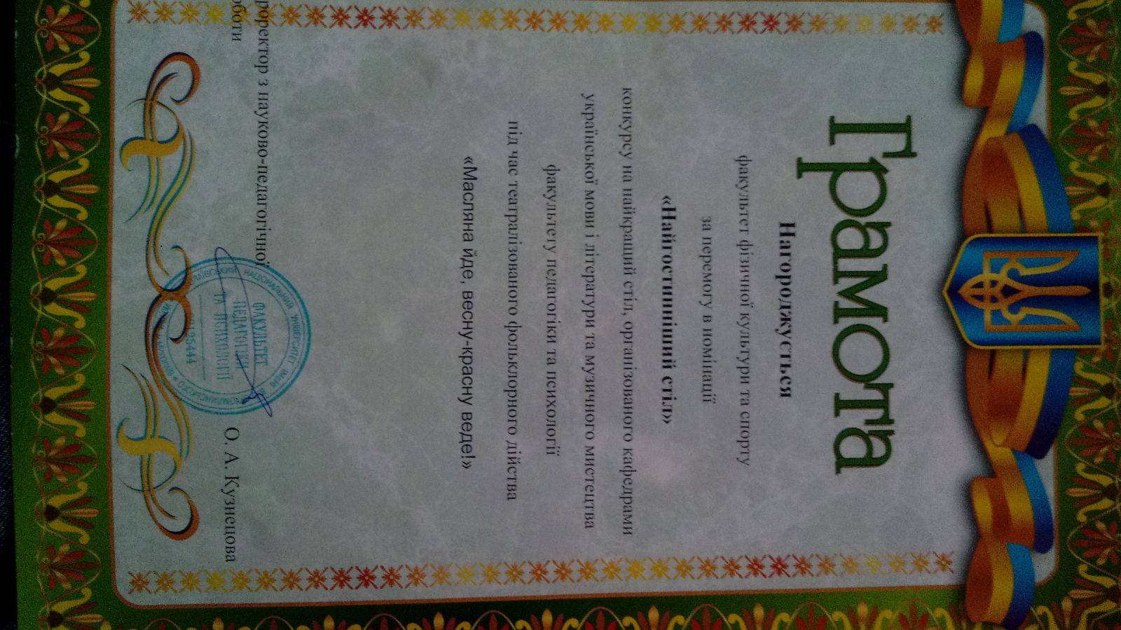 27.02.20 року проходило свято «Масляної» в якому прийняли участь всі групи факультету фізичної культури та спорту. Кожна група приготувала різні смаколики, приймали участь у конкурсах, були переодягнені в національний одяг. Отримали перемогу в номінації «Найгостинніший стіл».