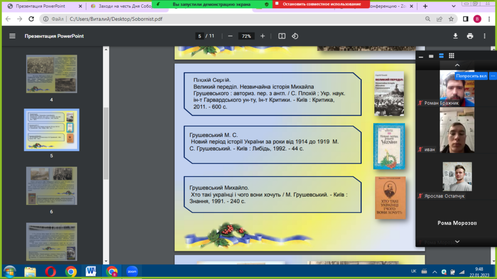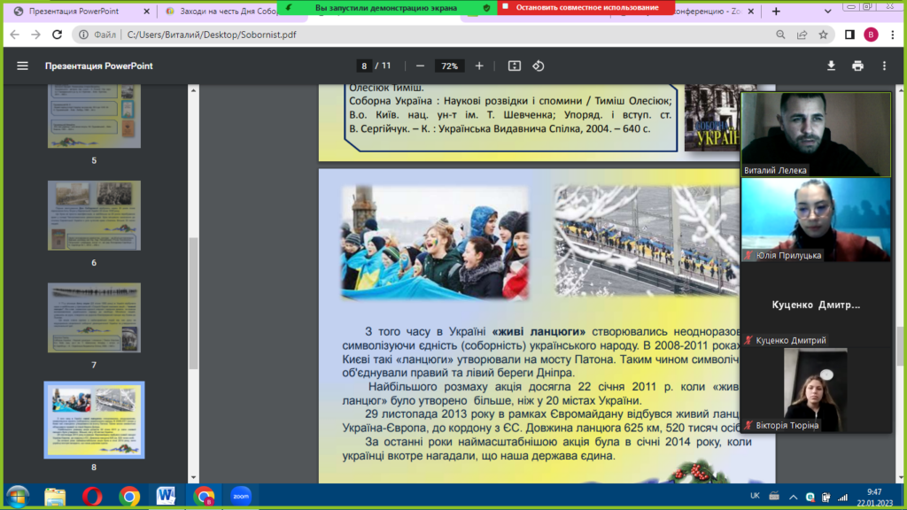 З метою виховання в підростаючого покоління глибокої поваги та любові до України, людської гідності, формування національної свідомості студентської молоді, виховання у них почуття патріотизму та з нагоди відзначення Дня Соборності України