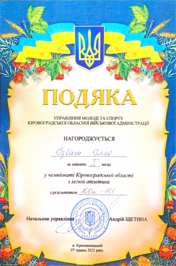 Спортсмен з честю відстояв звання одного із найкращих спринтерів Миколаївської області та показав гарний результат серед усіх університетів, за що був нагородженний грамотою.