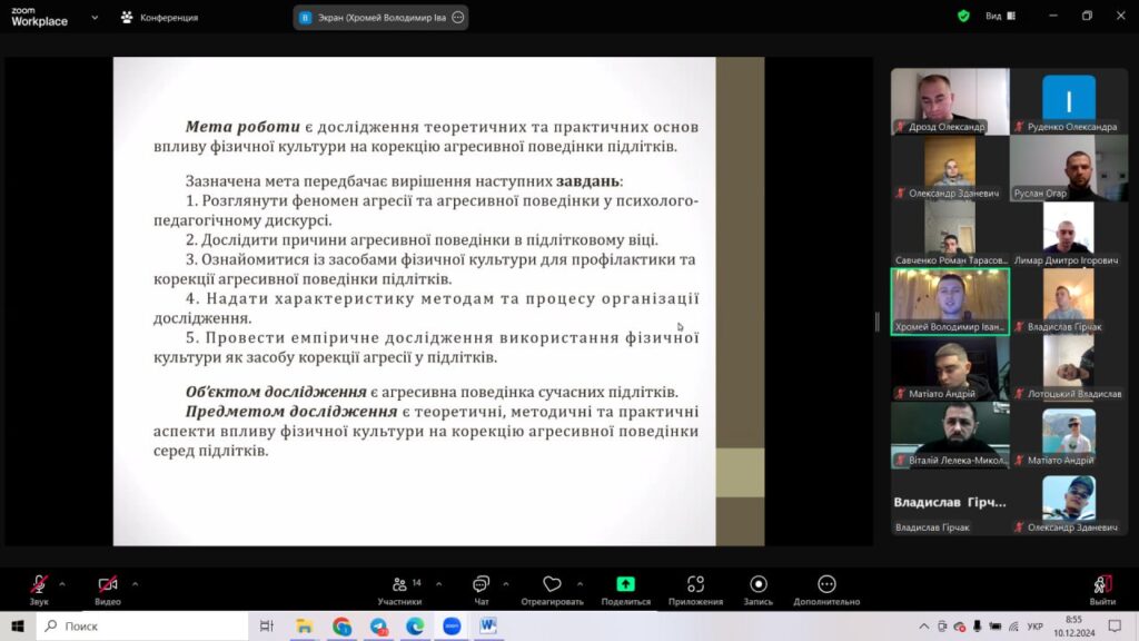 З 10.12.24 по 12.12.24 року відбувся захист кваліфікаційних робіт другого (магістерського) рівня спеціальності 014.11 Середня освіта (Фізична культура).